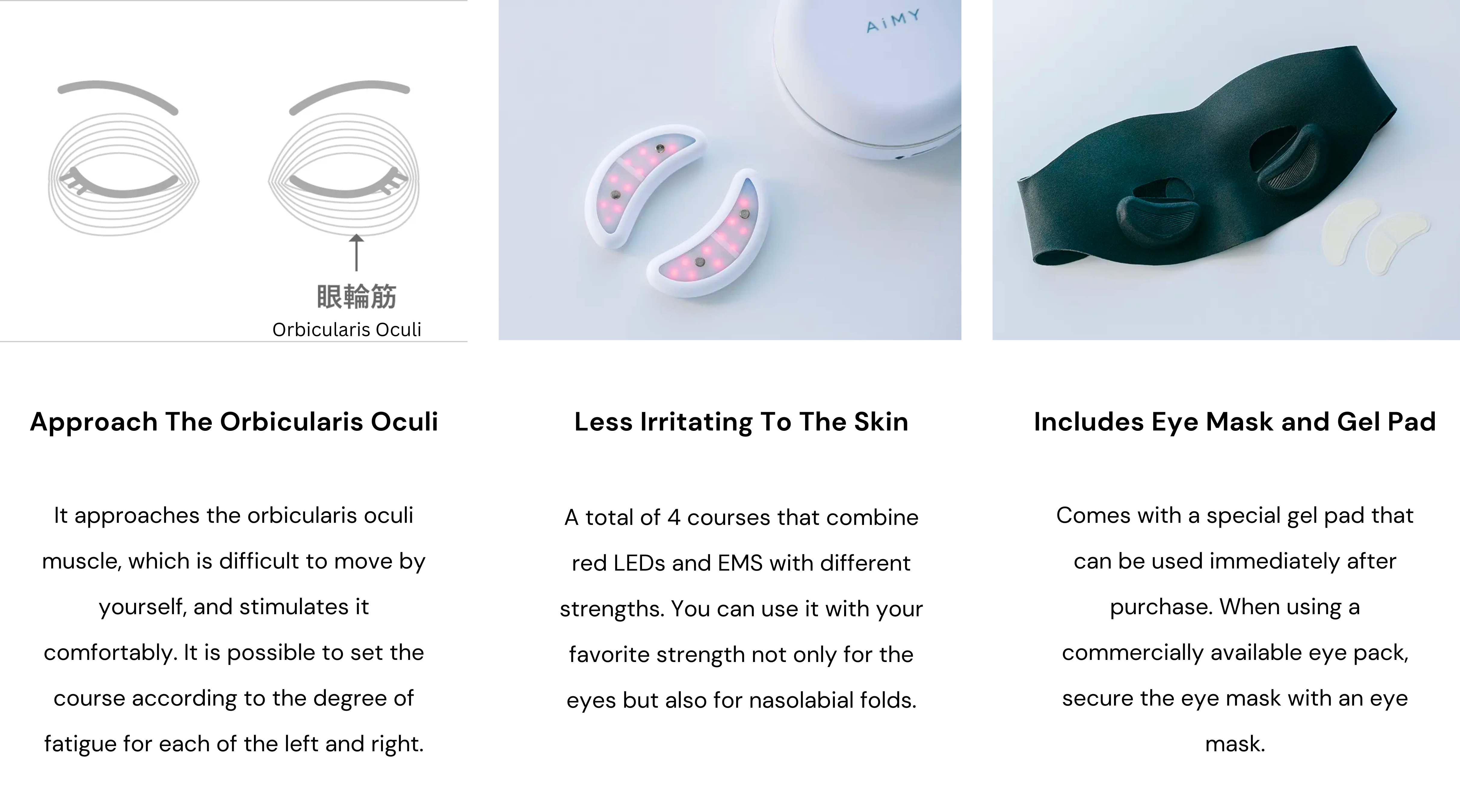 - Muscle Toning: EMS technology stimulates the muscles around the eyes, helping to tone and firm the orbicularis oculi muscle. This can reduce the appearance of sagging skin and wrinkles.
