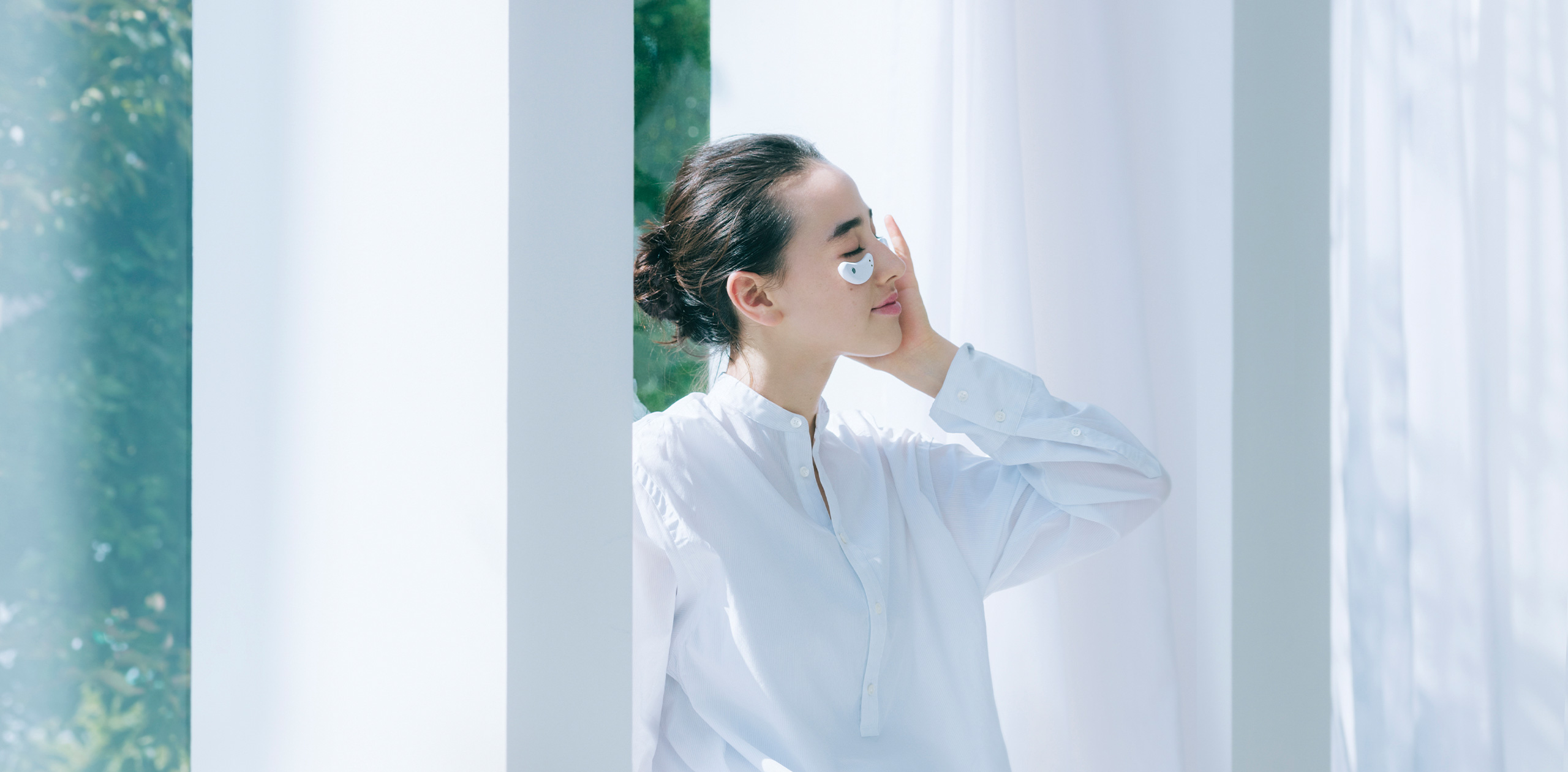 An eye beauty device that can be used hands-free while working or doing housework.